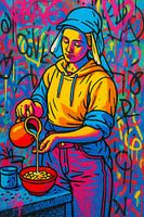 Koop dit Popart kunstwerk Urban Dutch Masterpiece – De Nieuwe Melkmeid van But First Framing als print op canvas, aluminium dibond, (ingelijste) fotoprint, behang en ArtFrame. Voor jou op maat geprint in Fine-Art kwaliteit.