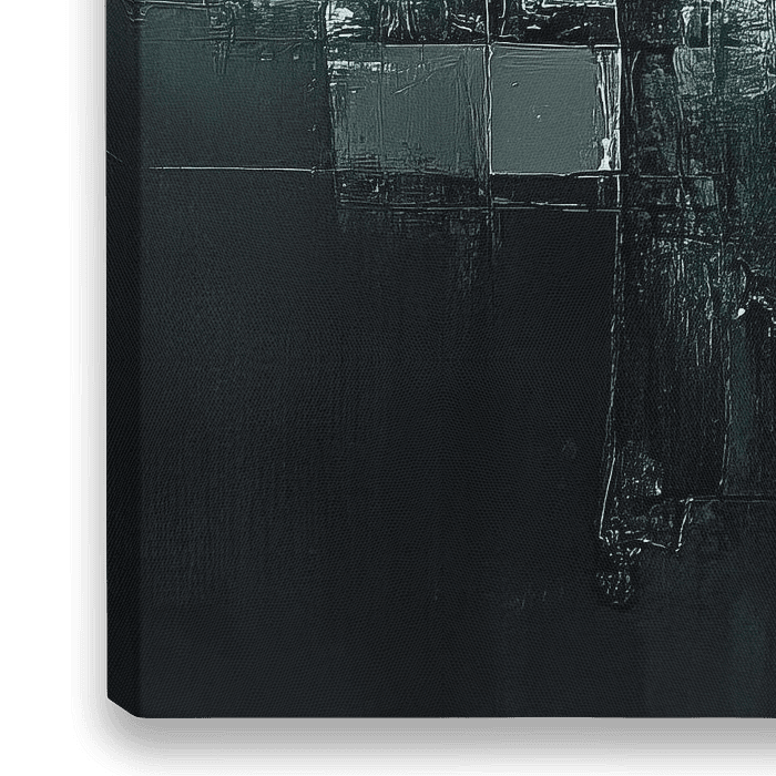 Urban Maze - Dit abstracte schilderij toont een harmonie van geometrische vormen in schakeringen van groen, grijs en wit, met een suggestie van diepte en lichtspel.