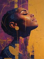 Portret, Vrouw, Abstract, Goud, Paars, Scheur, Stedelijk, Straatkunst, Modern, Expressief, Geometrisch, Contrast, Emotie, Eigentijds, Schilderij