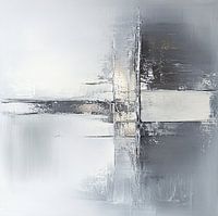 Details: abstract, schilderij, modern, minimalisme, textuur, grijs, wit, zwart, compositie, contrast