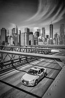 Een prachtig uitzicht op de Brooklyn Bridge op de skyline van Manhattan. Een decoratieve en stedelijke aan dezelfde klassieke scène van New York City.