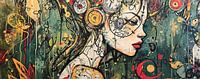 Urbane Street Art - Met een cascade aan kleur en dynamische vormen, brengt dit stuk een hommage aan de stadse energie omarmd door straatkunst. De in elkaar overvloeiende tinten groen creëren een levendige achtergrond voor de sierlijke, haast surrealistische verschijning van een vrouwelijk gezicht, omringd door abstracte patronen en…