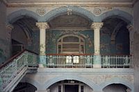 Een vervalen en verlaten trappenhal - balkon in een sanatorium.
