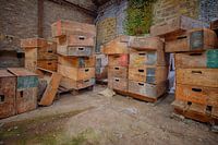Urbex: Kisten in een van de vele vervallen gebouwen van een verlaten kristalfabriek.