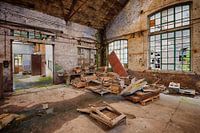 Urbex: Kisten in een van de vele vervallen gebouwen van een verlaten kristalfabriek.