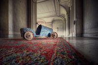Een trapauto in en oud vervallen en verlaten kasteel dat inmiddels gerenoveerd is.