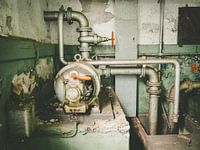 Het leidingwerk bij een verlaten waterkracht centrale.