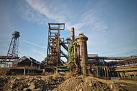 Mooi aanzicht van verroestte oude industrie. Blauwe lucht, met roestkleur en groene verf geven een mooi strak plaatje. Erg kleurrijk plaatje wat meteen de aandacht trekt, en vast houdt.