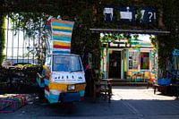 Deze locatie zit onder de graffiti en street art. Je hebt er veel clubs zitten maar ook leuke plekjes een biergartens waar je overdag een drankje kan doen. Om de hele plek hangt echt een urban en vervallen vibe. Deze foto heb ik gemaakt bij een cafeetje waarbij dit bij de ingang staat.