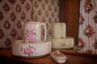Een lampetstel op een kaptafel met spiegel in een oud huisje dat al meer dan 30 jaar verlaten is.