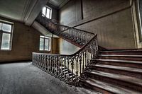 Prachtige trap met gedecoreerde trapleuning. Dit klooster staat al jaren leeg en het verval wordt steeds erger.