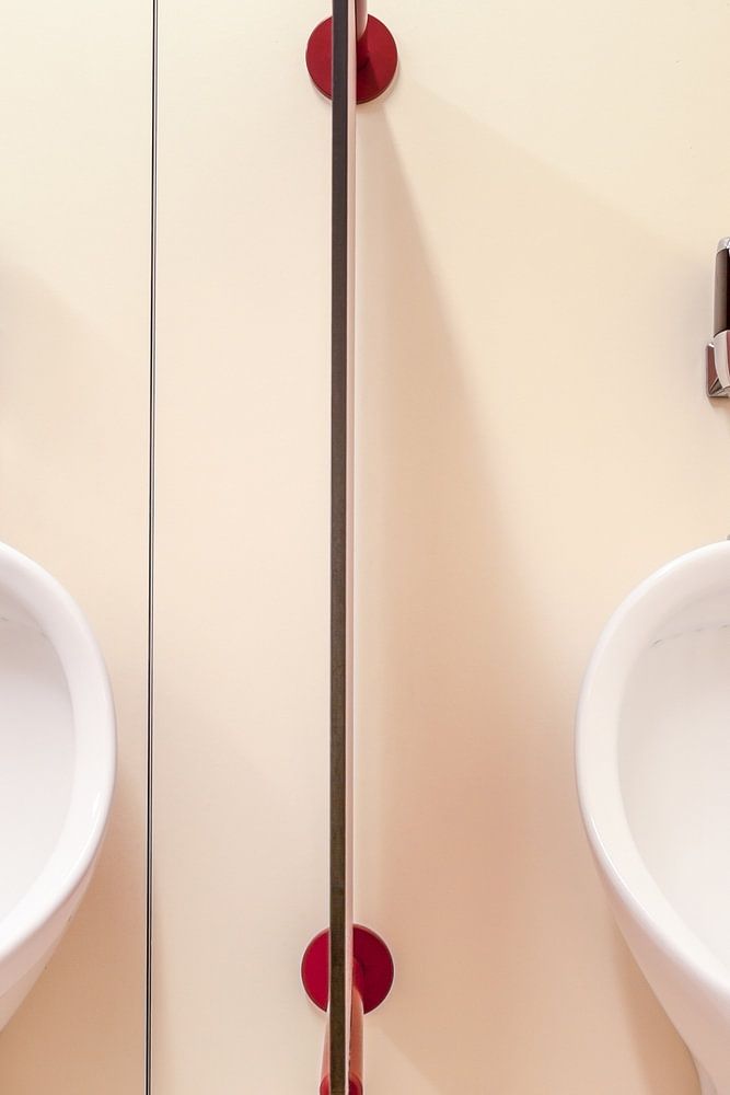 Deze urinoirs hangen in een openbare plaats in een groot gebouw en is vrij toegankelijk voor iedereen