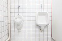 Deze urinoirs hangen in een openbare plaats in een groot gebouw en is vrij toegankelijk voor iedereen