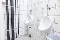 Deze urinoirs hangen in een openbare plaats in een groot gebouw en is vrij toegankelijk voor iedereen