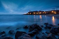 Het plaatsje Urk aan het Ijsselmeer tijdens het blauwe uur.
