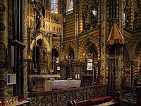 Het altaar in het interieur van de Ursulinen kloosterkerk aan de Oude Markt in historisch Sittard valt op door de zeer gedetailleerde versieringen.