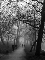 Op een mistige woensdagmorgen in het vroege voorjaar liep ik door de stad en om precies te zijn langs de singels. De sfeer was erg mysterieus en rustig. De mist bleef mooi hangen tussen de kale bomen. Het leverde deze foto op van utrechters die ergens naar toe onderweg waren en de mist voor lief namen. Ik vindt het en mooi stadsbeeld en vind het ook erg bij Utrecht passen. Ik heb hier een ouderwetse zoomlens gebruikt icm mijn Olympus camera.