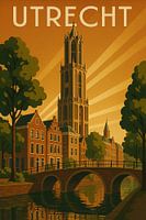 Deze Utrecht reisposter legt de essentie van een van de meest historische steden van Nederland prachtig vast. Het middelpunt is de Domtoren, die sierlijk uittorent boven charmante grachten en traditionele Nederlandse huizen. Warme gouden tinten en lichtstralen creëren een nostalgische Art Deco sfeer en vieren het rijke culturele erfgoed van Utrecht. Deze Utrecht poster is perfect als muurkunst en brengt elegantie en reisgeïnspireerde charme in elke woonruimte. De harmonieuze compositie van waterwegen, historische gevels en iconische architectuur maakt het een opvallend middelpunt. Ideaal voor kunstliefhebbers, reizigers of iedereen met een persoonlijke band met Utrecht. Deze print weerspiegelt zowel de middeleeuwse charme als de tijdloze schoonheid van de stad. Met zijn vintage reisontwerp roept de poster de romantiek van verkenning en geschiedenis op, waardoor hij geschikt is voor thuis, op kantoor of in creatieve ruimtes. Een perfecte aanvulling op elke kunstcollectie of een betekenisvol cadeau voor liefhebbers van de Nederlandse cultuur en Europese stadsgezichten.