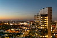 View over Utrecht zuid bij een zonsondergang. Een mooi zicht op de skyline van Utrecht zuid. In de verte zijn de windmolens zichtbaar.