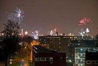 Vuurwerk knalt en spettert boven de stad Utrecht in Nederland. Tijdens oud en nieuw 2013 - 2014.