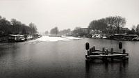 Utrecht is een waterrijke stad. Niet alleen heeft Utrecht middeleeuwse grachten in de binnenstad, er zijn ook kanalen en rivieren. Dit is de zij-arm van het Amsterdam-Rijnkanaal die van de wijken Kanaleneiland, Transwijk en Oog in Al ook een echt eiland maakt. De foto is ter hoogte van de Muntbrug. Het had ook nog eens gesneeuwd en het water lag wat dicht. Dit water hier scheidt de wijken Oog in Al en Lombok . Rechts op de foto staan de woonboten aan de oever van de wijk Lombok, links weer woonboten aan de oever van Oog in Al.