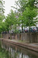 Tussen een aantal nog jonge bomen een heel recente aanplant, ook te herkennen aan het nog blanke hulppaaltje