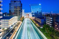 Uitzicht vanuit The Bridge op de Utrechtsebaan/A12, een van de belangrijkste verkeersaders, die Den Haag in gaat.