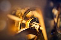 Draaiende tandwielen van het slagmechanisme in het uurwerk van een klok.