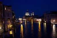 Foto van de kerk Santa Maria della Salute in Venetië, Italië. Ik heb deze nachtopname van een van de monumenten van Venetië enigszins bewerkt met de reflecties in het water.
