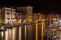 Midden in een lagune is de betoverende Italiaanse stad Venetië gebouwd op meer dan 100 eilanden. Deze eilanden zijn met elkaar verbonden door meer dan 400 bruggen, en meer dan 150 kanalen dienen als straten. De Rialtobrug is een van de beroemdste bouwwerken en leidt over het Canal Grande, dat bijna vier kilometer lang is. Prachtig uitzicht vanaf de Rialtobrug in de stilte van de nacht.