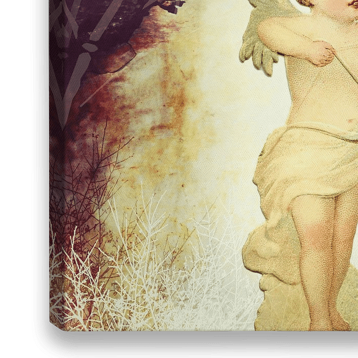 Vierkant formaat. Moderne gemengde techniek: abstract schilderij met een vintage cupido. ©7-2017 door Pia Schneider | atelier COLOUR-VISION.