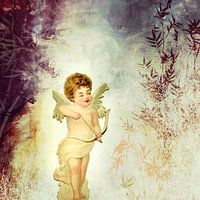 Vierkant formaat. Moderne gemengde techniek: abstract schilderij met een vintage cupido. ©7-2017 door Pia Schneider | atelier COLOUR-VISION.