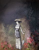 Collage: abstract schilderij, texturen, bloementekeningen, grafisch ontwerp, vintage dame. ©2017/2021 door Pia Schneider | atelier COLOUR-VISION.