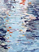 Haal de rustgevende schoonheid van water in huis met dit betoverende abstracte schilderij, "Reflections in Motion". Geïnspireerd door de steeds veranderende dans van licht op water, combineert dit kunstwerk op meesterlijke wijze koele blauwtinten, zachte grijstinten en levendige oranje en gouden accenten voor een betoverende visuele…