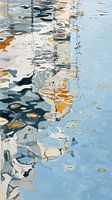 Haal de rustgevende schoonheid van water in huis met dit betoverende abstracte schilderij, "Reflections in Motion". Geïnspireerd door de steeds veranderende dans van licht op water, combineert dit kunstwerk op meesterlijke wijze koele blauwtinten, zachte grijstinten en levendige oranje en gouden accenten voor een betoverende visuele ervaring.