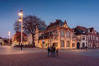 Het blauwe uur met straatverlichting in de Zuid-Limburgse plaats Valkenburg aan de Geul (Nederland).