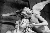 Beeld op een tombe op de Staglieno begraafplaats in Genua.
