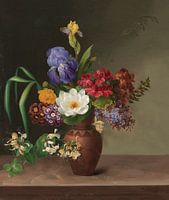 Vaas in Griekse stijl met iris, sering en kamperfoelie, Hermania Neergaard (1831)