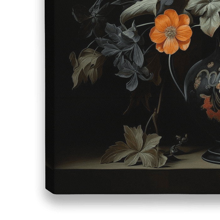 Vaas met bloemen zwarte achtergrond schilderij brengt de tijdloze charme van een klassieke bloemschikking samen met een moderne, krachtige uitstraling. Het kunstwerk toont een elegante vaas die gevuld is met een rijke variatie aan bloemen, ieder met zorgvuldig weergegeven vormen, structuren en natuurlijke nuances. Tegen de diepe zwarte…