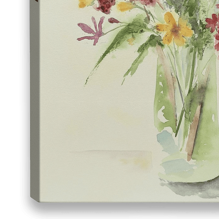 Koop dit bloemen kunstwerk Vaas met bonte bloemen mix (wildboeket gemengde pastelkleuren vrolijk aquarel schilderij tuin natuur van Natalie Bruns op canvas, aluminium dibond, (ingelijste) fotoprint, behang en ArtFrame, op maat geprint in Fine-Art kwaliteit.