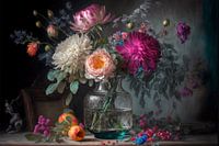 Een glazen vaas, gevuld met prachtige diverse bloemen.