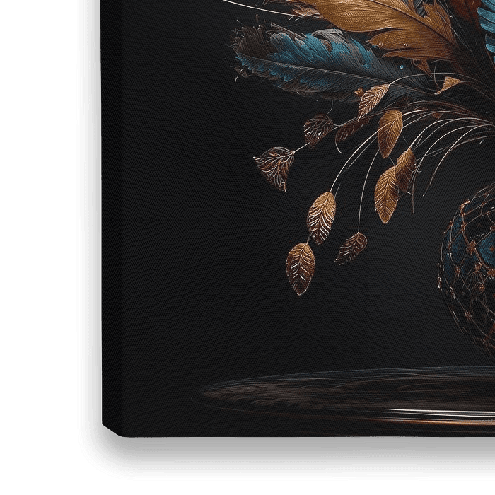 Verrijk uw interieur met dit prachtige stilleven van een exclusieve vaas gevuld met exotische veren en pluimen! Dit werk voegt een vleugje verfijning toe aan elke ruimte.
