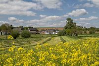 Vakwerkhuisjes tussen het drogende gras in Mamelis in Zuid - Limburg