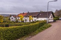 Traditionele vakwerkconstructie toegepast in deze huizen in het Zuid-Limburgse Diependal dichtbij het dorp Epen (Heuvelland, Nederland).