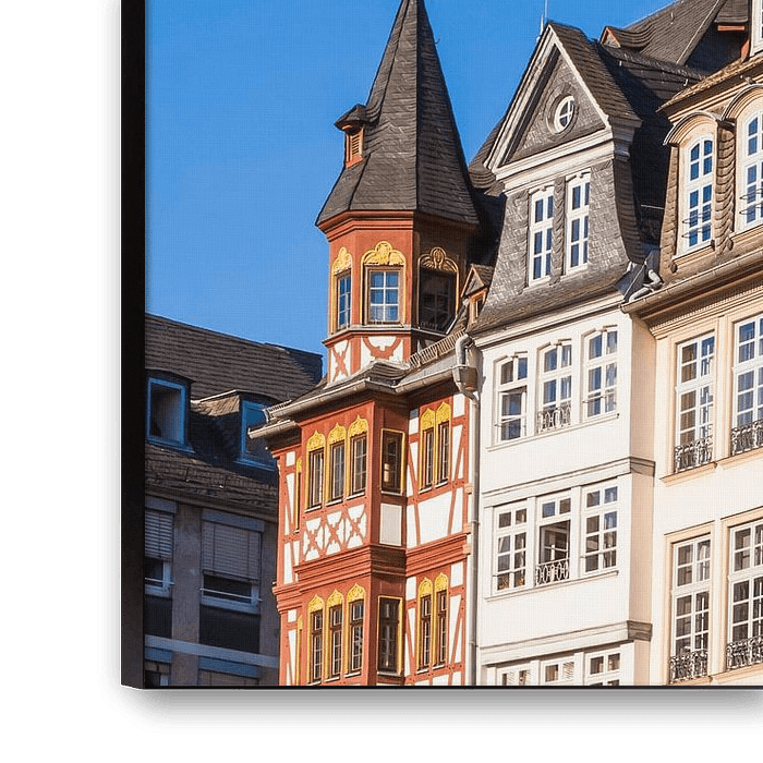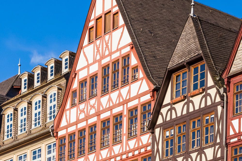 Vakwerkhuizen aan de oostzijde van de Römerberg in Frankfurt am Main.