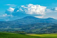 Val d'Orcia in Toscane met regenbuien die tot ontwikkeling komen.