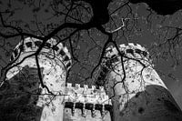 Spanje Valencia middeleeuwse stadspoort Torres de Quart in zwart en wit met tak