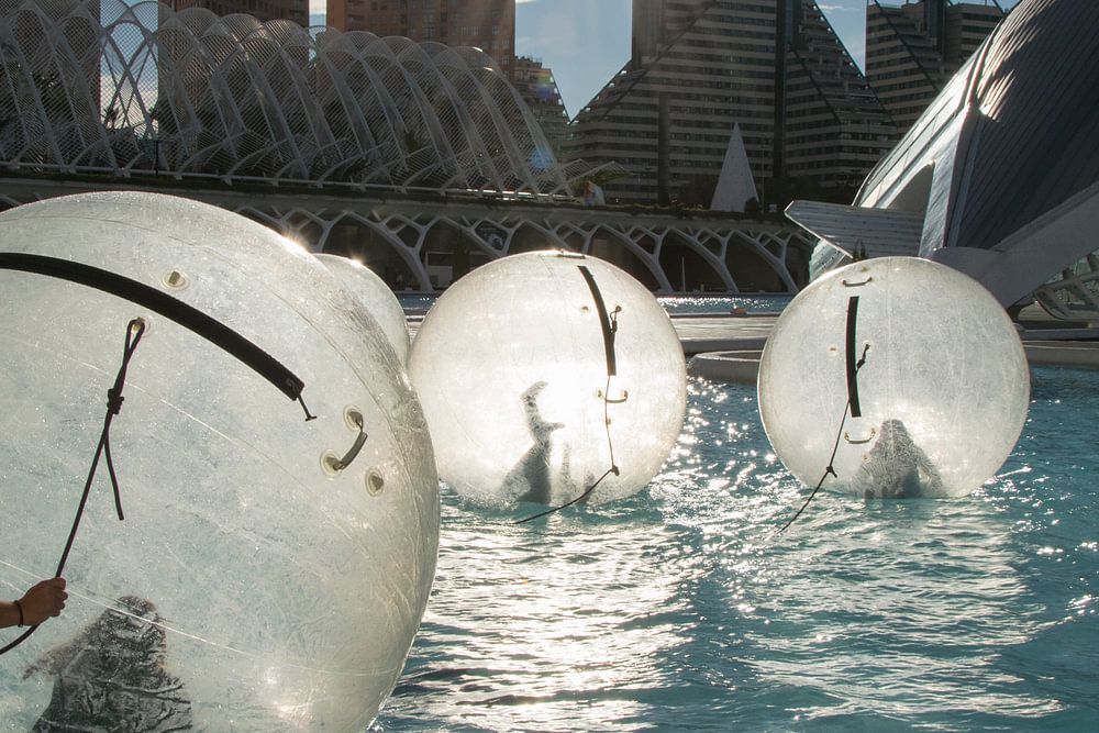Spelen in de Ciudad de las Artes y las Ciencias in Valencia.