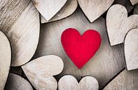 Valentijn dag achtergrond met houten liefde harten