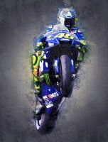 Een prachtig olieverf portret van Valentino Rossi. Zorgvuldig laag voor laag opgemaakt tot dit prachtige resultaat. Heldere kleuren en van zeer hoge kwaliteit. bijnamen Vale The Doctor, is een Italiaanse motorcoureur. Valentino Rossi heeft 9 wereldtitels en 115 Grand Prix-overwinningen op zijn naam en behoort daarmee tot de succesvolste motorcoureurs ooit.